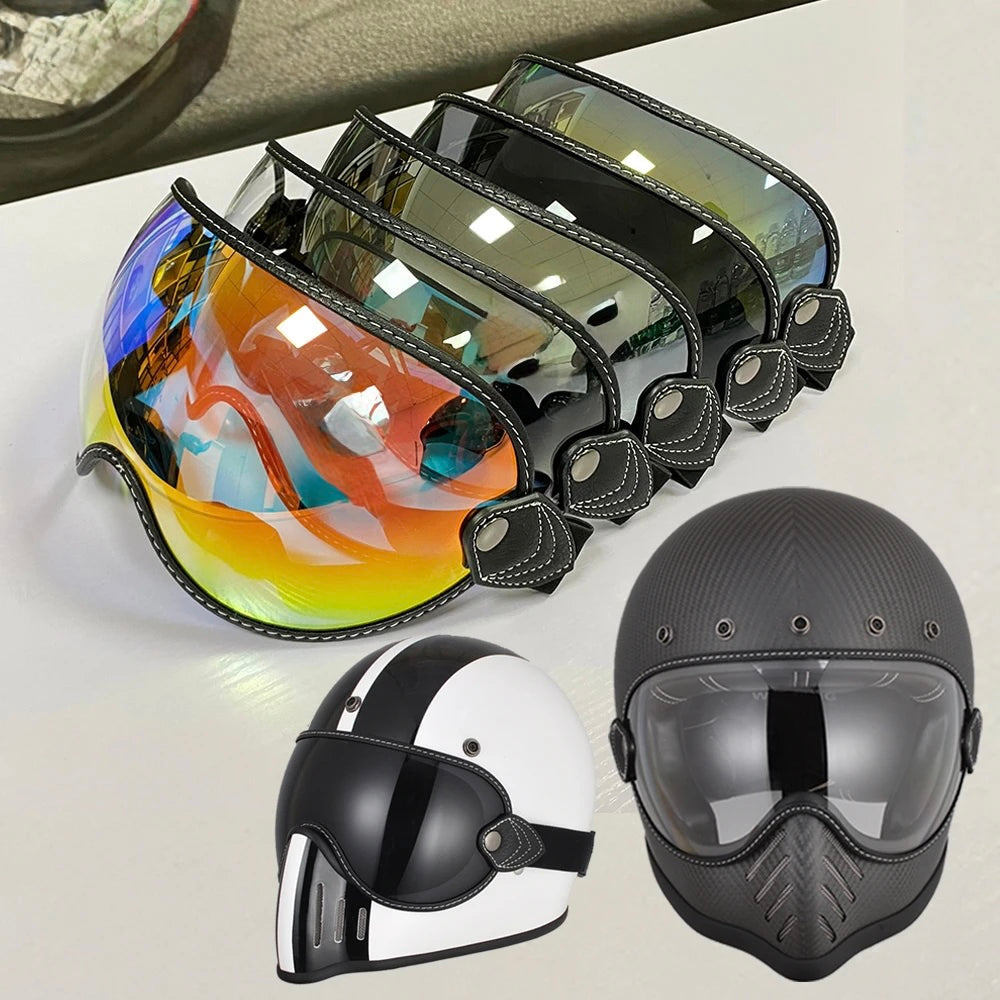 • Inspirados em estilos clássicos, os óculos viseira retrô oferecem um visual nostálgico, perfeito para amantes de motocicletas e personalizações de capacetes.