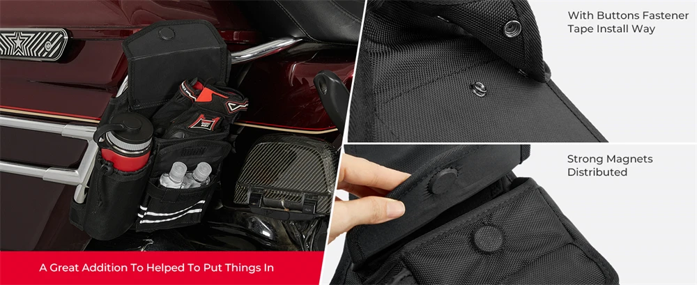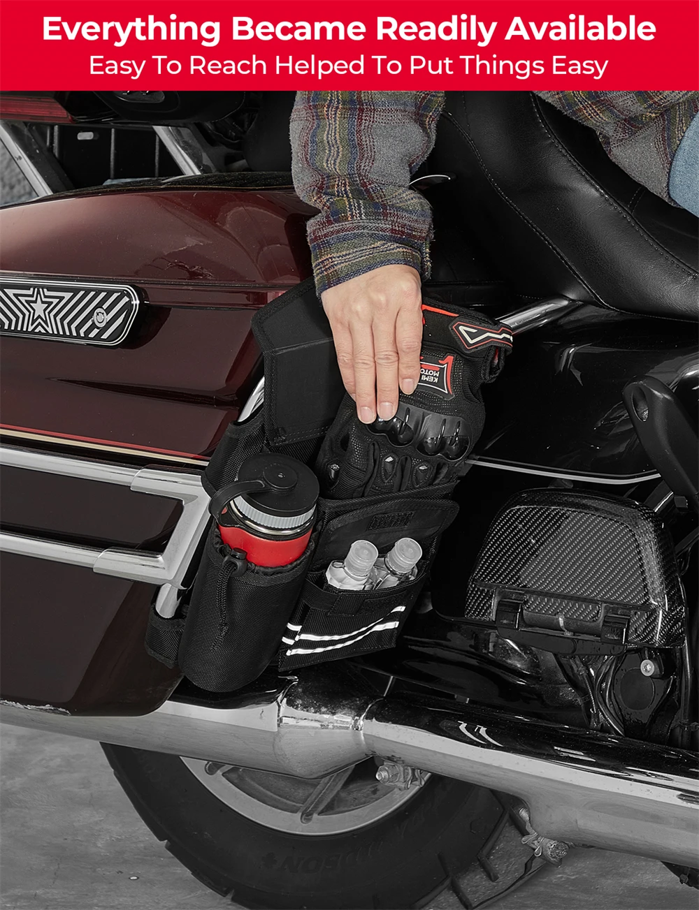 - Compartimento para Garrafa: Cada alforje possui um espaço dedicado para garrafa, permitindo que você mantenha sua hidratação sempre à mão durante a viagem. O design prático facilita o acesso à garrafa, tornando-o ideal para longas jornadas.